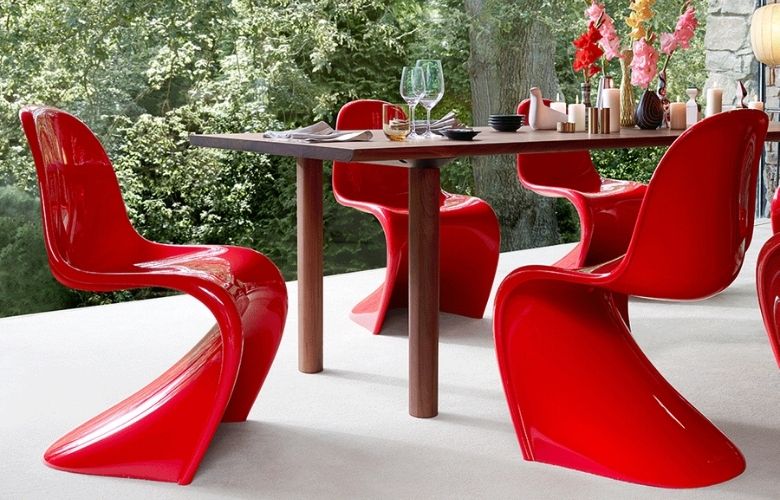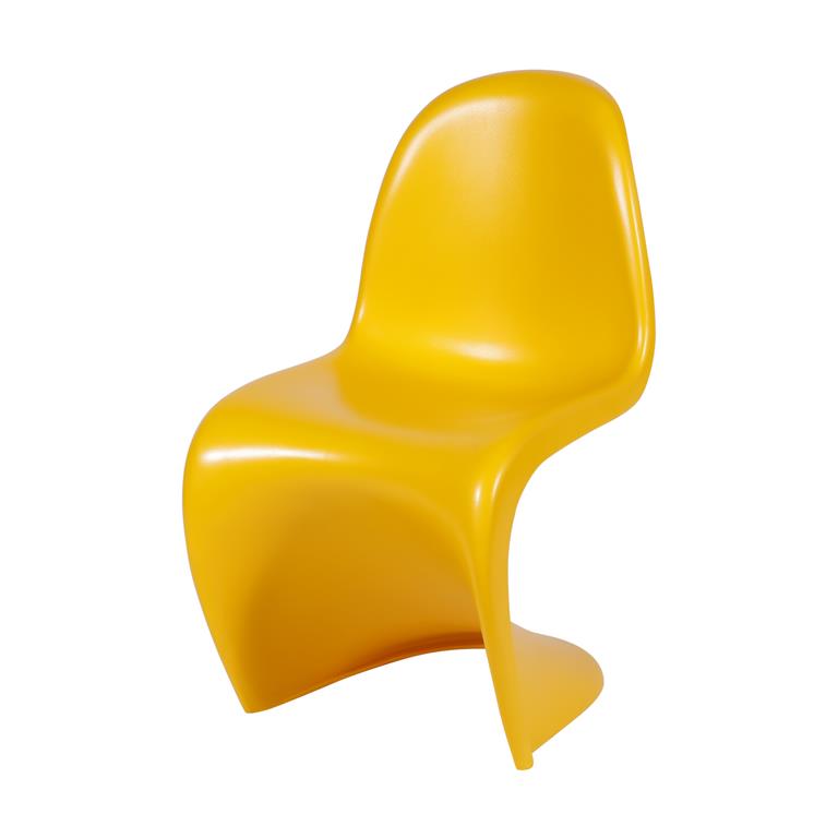 Cadeira Panton em fiberglass moldado a frio, esta peça foi uma das primeiras cadeiras a serem fabricadas com fibra de vidro, proporcionando desenho totalmente livre na industrialização além de resistência excelente a peso, desenhada por Verner Panton em 1959.